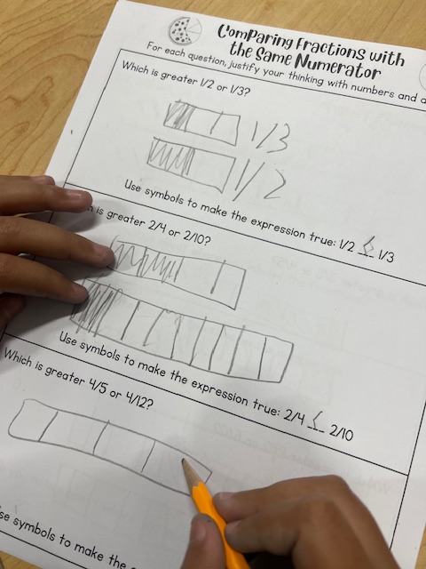 Lessons on comparing fractions with the same denominator or the same numerator are a powerful introduction to the significance of the numbers in fractions.