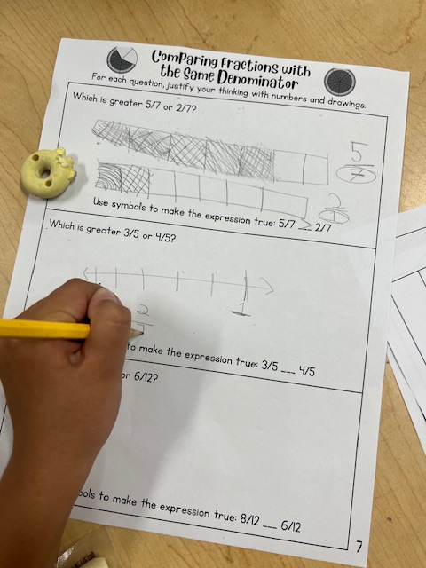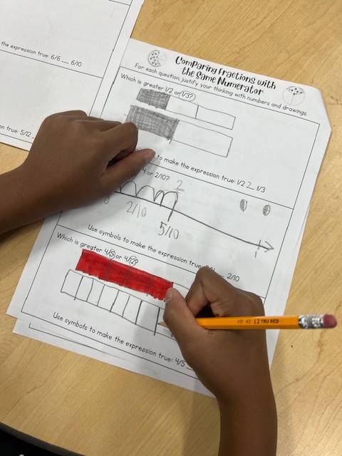 It is important to remember that while fractions may come easily to adults, this is a completely new concept for 8-10 year olds. The significance of the numerator and denominator are still foreign concepts.