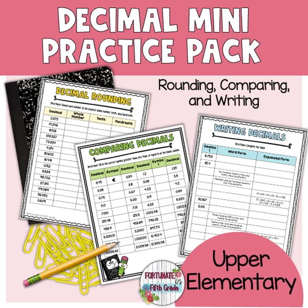 Get ready-to-use decimal worksheets covering rounding, comparing, and writing decimals.