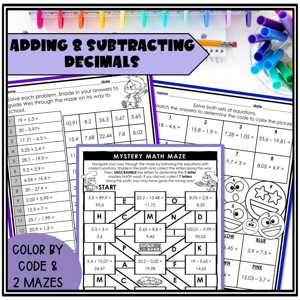 Try these 2 maze challenges and color-by-code activity to amp up your students’ decimal skills. This resource includes 3 activities that will give your students practice with adding and subtracting decimals. These engaging activities will help your students solidify key decimal skills. Students will be so busy having fun that they won’t notice that they are learning important decimal concepts.